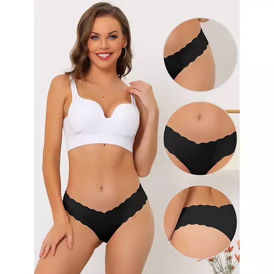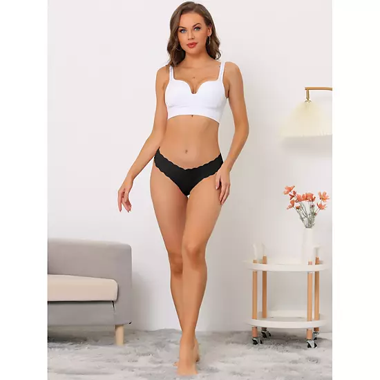 This package includes 10 Thong Underwears; Flaunt your self-assurance with our cheeky underwear for women. The v-shape high-waisted design not only enhances your figure but also offers a comfortable and secure fit. Made from ice silk fabric, our unlined underwears provide a luxurious feel with soft and silky texture. The no-show feature, along with the laser cut hem, eliminates visible panty lines and ensures a unlined look under any outfit. Experience ultimate comfort with our tag-free cheeky underwear, designed to prioritize your comfort and style.