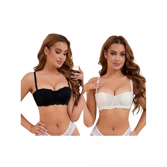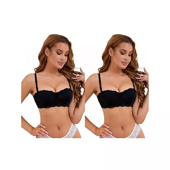 This package includes 2 Packs Minimizer Bras; Lace, Underwired, Balconette, Adjustable Straps, Padded, Tube; Customize the fit of your bra with the adjustable straps that allow you to find the comfort level for your unique bodyshape; Perfect for daily wear, home, casual, workout, and so on; The lace detailing adds a touch of sophistication and femininity, making you feel elegant and comfort whether worn as innerwear or as part of a stylish outfit.