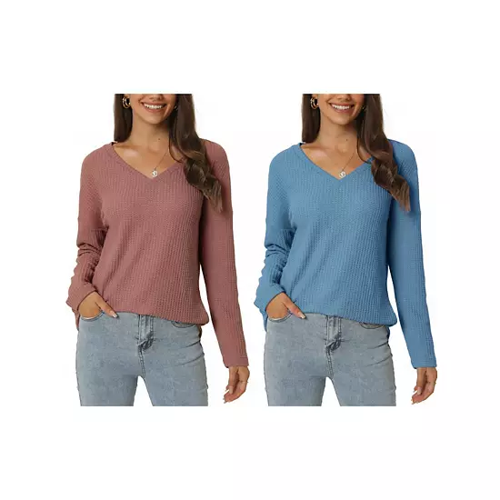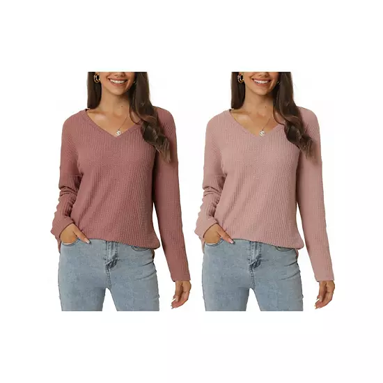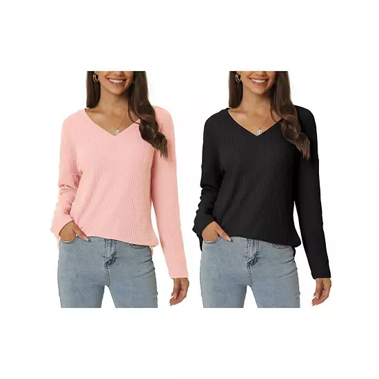 This package includes 2 Packs Women’s T Shirts. This V-neck top is perfect for transitioning seasons and has long sleeves to keep you warm on cooler days. Perfect for layering, this top is worn with high-waisted jeans, skirts, shorts, and dresses. Crafted from cozy waffle knit, these tops are perfect for layering or wearing on their own. Assorted Color Options: 1 Black 1 Army Green; 1 Black 1 Blue; 1 Black 1 Brown; 1 Black 1 Dusty Pink; 1 Black 1 Grey; 1 Black 1 Pink; 1 Brick Red 1 Army Green; 1 Brick Red 1 Black; 1 Brick Red 1 Blue; 1 Brick Red 1 Brown; 1 Brick Red 1 Dusty Pink; 1 Brick Red 1 Grey; 1 Brick Red 1 Pink