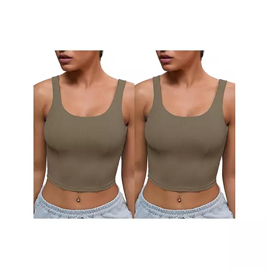 This package includes 2 Packs Camisoles Lingeries; U Neck, Sleeveless, Workout, Slim Fit; Full coverage women sports bra can effectively provide additional support; It is suitable for daily wear, fitness exercise etc; The U back detail not only offers a fashionable touch but also ensures comfort while you exercise; With padded cups providing shape and support, this sports bra cami crop is perfect for various fitness activities.