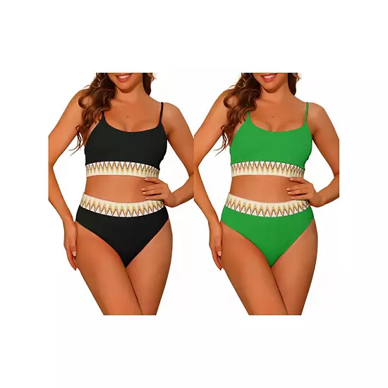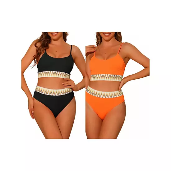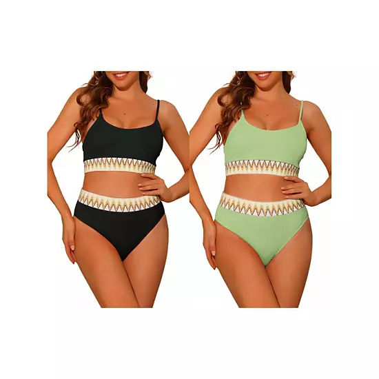 This women’s high waisted bikini set features a stylish ribbed design; The adjustable spaghetti straps ensure a comfortable fit; Suitable for various occasions including beach parties and tropical vacations; The fabric is quick-drying and stretchy for added comfort; Available in multiple colors and sizes.