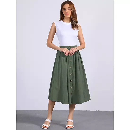 This solid dress is made up of several design points: decor buttons, high waist, pleated, A-line skirt; Suit for spring/summer/fall and for many occasions, such as beach vacation, party, cocktail, club, and more; Pair with heels/sandals for a charming inspired look.
