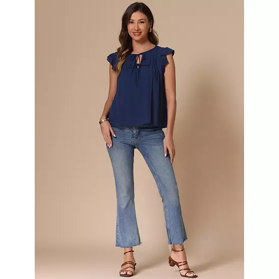 The v-neck blouse is a perfect choice for your daily wear, outdoor activities, shopping, dates, vacation and any other occasions in Spring, Summer and Fall. V Neck, Short Sleeve, Ruffle Sleeve, Solid Color, Casual Tops. The shirts for women dressy casual suitable for work, everyday, dating.
