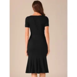 INSPIRE CHIC Women’s Vintage Office Fishtail Cocktail Bodycon Midi Dress