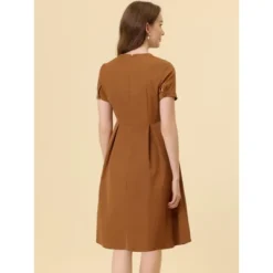 INSPIRE CHIC Women’s Vintage Round Neck Short Sleeve Pleated 1950s Midi Dress