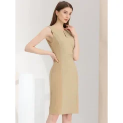 INSPIRE CHIC Women’s V Neck Office Sleeveless Bodycon Midi Pencil Dress