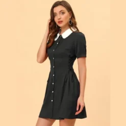 INSPIRE CHIC Women’s Vintage Peter Pan Collar Short Sleeve Button Down A-Line Mini Dress