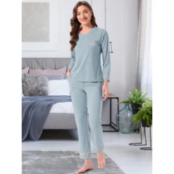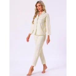 INSPIRE CHIC Women’s Cotton Sleepwear Button Down Lounge Long Sleeve Shirt And Pants Pajama Sets