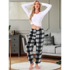 INSPIRE CHIC Women’s Fleece Fluffy Plush Winter Button Down Tops With Pants Warm Pajama Sets