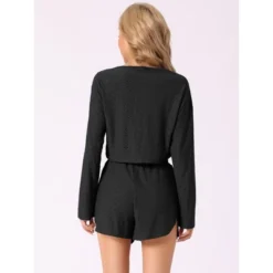 INSPIRE CHIC Women’s Knit Loungewear Crop Tops With Shorts Button Down 2 Pcs Pajama Sets