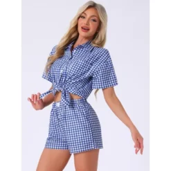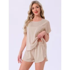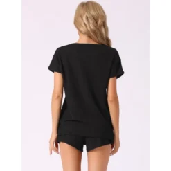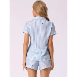INSPIRE CHIC Women’s Short Sleeve Button Up Top And Shorts Loungewear Pajamas Set 2 Pcs