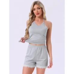 INSPIRE CHIC Womens Cami Pajamas Racerback Lace Trim V Neck 2 Piece Tank Top With Shorts Sets