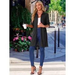INSPIRE CHIC Women’s Waffle Zip-Up 3/4 Sleeves Short House Dresses Bathrobe With Pockets