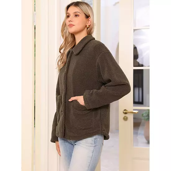 This casual jacket is made up of several design points: Doll Collar, Button Down, Faux Fur Fuzzy Fabric, Long Sleeve, Front Pockets; Suitable for autumn/winter and for many occasions: Casual, Shool, Daily Life, Office, Outdoor Activitie and so on; Perfect to pair basic sweater or jeans for a trendy look.