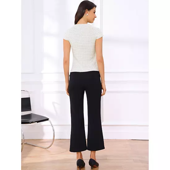 Elevate your workwear with this timeless houndstooth print, blending sophistication and style for a professional yet fashionable look in the office; The crew neckline adds a touch of elegance, making it suitable for various office dress codes and easily paired with necklaces or scarves for a personalized look.