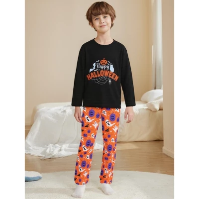 - These cute pumpkin print loungewear keep the whole family cozy during celebrations. The round neckline and long-sleeve design are simple and universally flattering