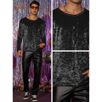 The long-sleeved men’s crew neck velvet shirts are of fashion and retro design, showing out your perfect figure. Pair velvet long sleeves with leggings, jeans, and a leather or denim jacket for a casual cool look. The velour long-sleeved t-shirts are perfect for home wearing, prom, party, weddings, dates, etc.