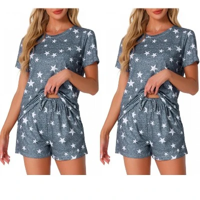 Short Sleeve Sleepwear is crafted from soft, lightweight, and comfy fabric—superbly breathable, it offers gentle stretch while maintaining its shape. You can enjoy excellent comfort and ease while sleeping. Women’s 2 Piece Pajama Set: Short Sleeve Top and Shorts Set featuring crew neck short sleeve tops and drawstring elastic waist shorts. Available in solid colors and multiple patterns: red, grey, black stripes, tie dye, light grey, and dark grey star print.