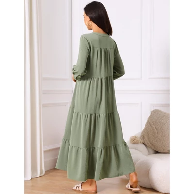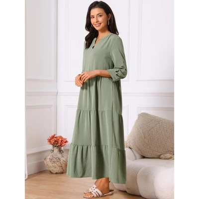 Fashion Style: V-shaped Neck/ 3/4 Sleeve/Buttoned Cuff/Two Pockets/Casual Dresses. This dress will flatter any body shape, making it a timeless addition to any wardrobe. Casual dress is perfect for casual, daily, vacation, beach, holiday, wedding, office, family gathering, etc. Three-tiered design cleverly skims the body with lightweight, flowy fabric that moves beautifully and suits all body types.