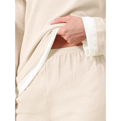 - The Pajama Waffle Casual lounge sets, tops with long sleeves, round neck, contrast color hem, pants with elastic waist