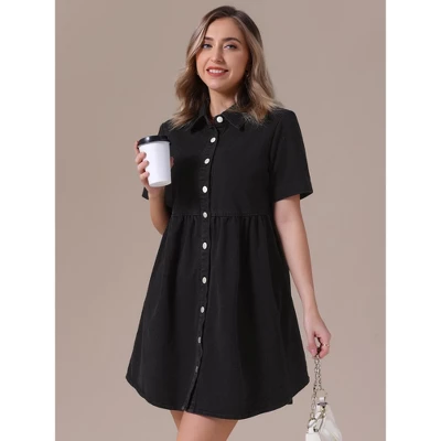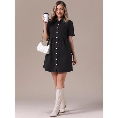 - Features: Babydoll, Short Sleeves, Slash Pockets, Button Down Shirt Dress, Mini Length