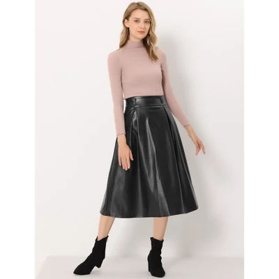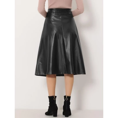 Flattering and stylish, the elastic-waist design is convenient and comfortable to wear. The knee-length midi PU leather skirt can show your ultra-elegant and chic figure. It features a self-tie belted, high elastic waist, and an invisible side zipper. The suitable length up and down makes the skirt adapt to any situation. Pair it with casual blouses or button-down shirts. Puff sleeves tops or warm sweaters, and high heels or cool boots will also be nice decisions to match with the PU skirt. Perfect for various occasions, such as dating, office work, parties with friends, school, leisure travel, casual daily, club, night out, dance, and so on. The model is wearing size X-Small.