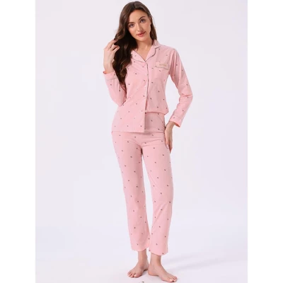 Made from 95% Cotton and 5% Spandex, this printed lounge set offers breathability, softness, and gentle stretch for daily indoor wear. The long-sleeved top is styled with a notched collar, button front, chest pocket, and contrast color trims at the collar, cuffs, and hem. The matching pants feature an elastic waistband and side pockets for practical use. Designed for cooler months, this set is perfect for bedtime comfort, early mornings, or unwinding at home. The playful printed patterns and subtle trim details add just enough visual charm without compromising on function. Whether you are relaxing after work or starting your weekend slow, this pajama set offers a comfortable and composed fit with a tidy silhouette. It also makes a thoughtful gift for those who appreciate practical design with a soft and wearable feel.