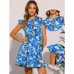 Women’s Short Sleeve A-Line Flower Dress is a charming and versatile piece for your wardrobe. This dress features a crew neckline, short sleeves, an A-line silhouette, and a lovely floral pattern, perfect for a casual and feminine look. Made from 100% polyester, it offers a soft stretch fabric ensuring comfort throughout the day. The dress is designed with an invisible side zipper for a seamless appearance. Ideal for summer, it suits various occasions such as parties, clubs, meetings, coffee shops, street outings, date nights, work, office settings, weekends, and formal events. Pair it with high heels or chic accessories for an enhanced look.