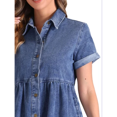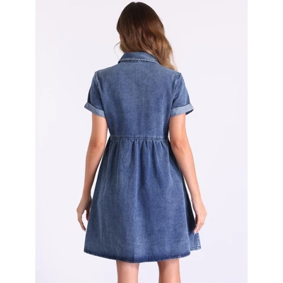 - This denim dress has an A-line babydoll design, which is suitable for all body types and the relaxed fit allows for comfortable movement throughout the day