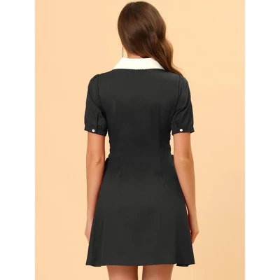 A contrast peter pan collar and lace-up waist design feature a vintage and graceful style that can be a spotlight. Easy to dress up and down with button-down and button cuffs, while soft fabric makes this retro dress breathable and comfortable. Occasion: Dating, Dinner Party, Dancing, Weekend, Photo, Holiday, Casual, Daily Wear, etc. A cute dress for sweet dating, you can pair it with a stylish handbag for an elegant look.