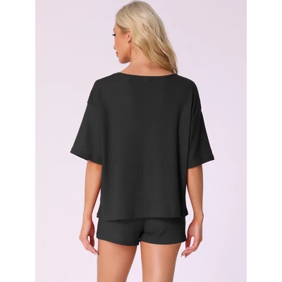 - Design: Pajamas Tops feature short sleeves, round neck, pullovers and drop shoulders. Shorts feature a High Waist and elastic Waist Band. Loose Fit designs made everyday casual and comfy
