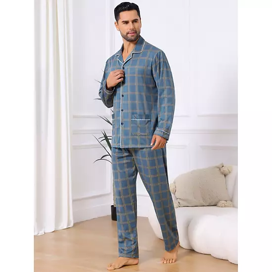 The 2-piece pajama set includes a shirt and a pair of pants. Long-sleeved button-down pajamas with notch collar, front pockets and contrasting trim. The elastic waist pants can fit your body; The pajama set is suitable for all seasons. The loose and comfortable version ensures comfort when lounging and sleeping; It is suitable forhome leisure, pajama party or daily wear and so on.