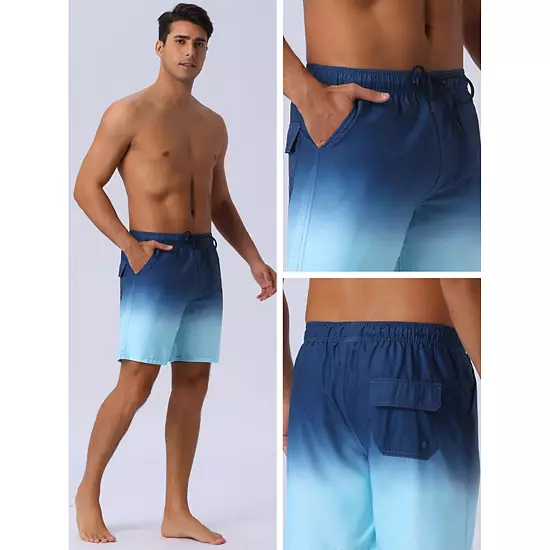 These swim trunks are designed to provide coverage while allowing for freedom of movement. Swimwear features a lining for added comfort and support, keeping you comfortable in the water. The color gradient swim trunks are a fashionable choice for those who appreciate a relaxed, surfer-inspired look.