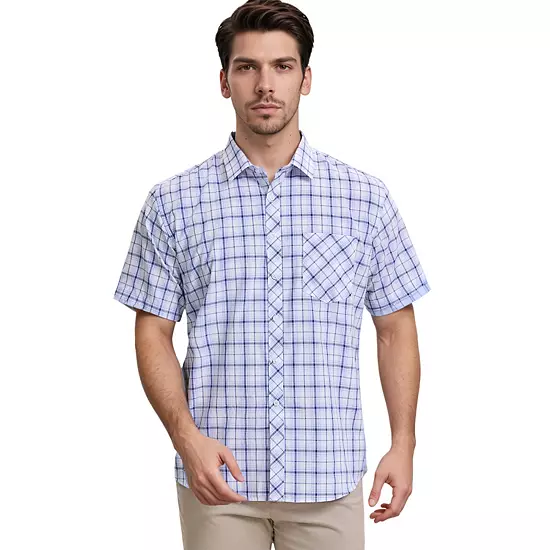Add a touch of sophistication to your wardrobe with this versatile plaid shirt; Perfect for summer days, this men’s plaid shirt features a timeless design and comfortable fit; Stay cool and comfortable all day in this breathable men’s short sleeve plaid shirt.