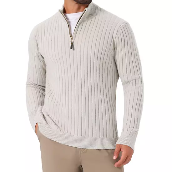 Featuring a contemporary quarter-zip closure and structured mock neck, this knitted pullover delivers both style and functional warmth. Delicate ribbed textures create subtle visual interest, enhancing the sweater’s great appearance. The versatile design works equally well for weekend activities when paired with chinos or dark denim. The stand collar design highlights the polished appearance, providing a unique and attractive point for standard sweaters. Easily pairs with blazers and tailored trousers for a formal office-ready ensemble that maintains comfort. Great for style-conscious men seeking to express individuality while meeting formal dress codes.