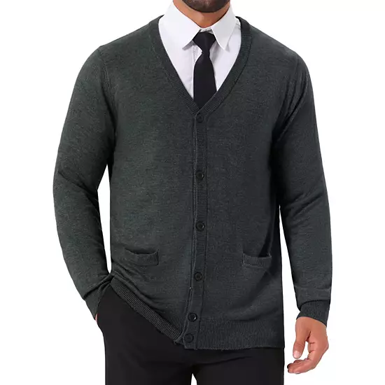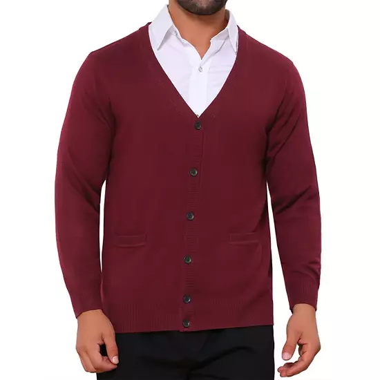 This knit cardigan has a simple and stylish design with solid color, V-neck, long sleeves, button collar, and two pockets. The knitted cardigan fabric is soft and comfortable to wear. This knit cardigan can be worn alone as a long-sleeved sweater, paired with a T-shirt as a knitted outerwear, or worn as an inner layer of an outerwear, and casually paired with a pair of pants, suitable for spring, autumn, and winter. This knit cardigan is a versatile wardrobe essential. This versatile piece can be easily worn in both formal and casual occasions. Wear it with casual pants and a business shirt for a business meeting, or with jeans for a casual weekend.
