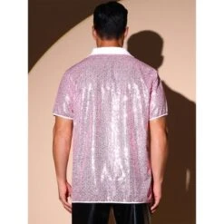 INSPIRE CHIC Sequins Shirts For Men’s Camp Collar Short Sleeve Button Down Party Shiny Shirt