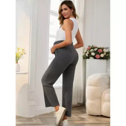 Women Maternity Lounge Pants Over Belly Wide Leg Casual High Waisted Lounge Pants With Pockets