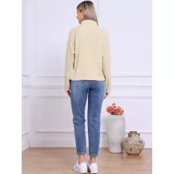 Women’s Fleece Short Jacket Button Down Lightweight Long Sleeve Soft Fall Crop Jackets With Pockets