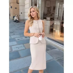 Women’s Summer 2 Piece Suit Skirt Set Business Work Set Button Down Vest Blazer And Pencil Skirt