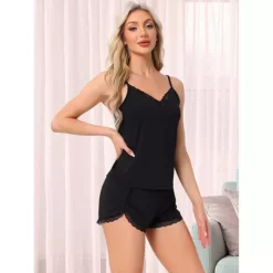 Women’s Pajama Sets Lingerie Soft Sleepwear 2 Piece Cami Shorts Pj Set V Neck Lace Nightwear