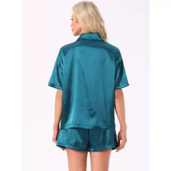 Women’s Pajamas Set Button Down Notch Collar Short Sleeve With Shorts Set Soft Cozy Lounge Set
