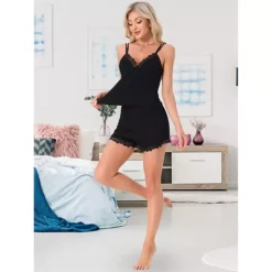 Women’s Sleepdress Sleeveless Double Spaghetti Strap Criss Cross Back V Neck Midi Lounge Nightgown