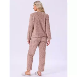 Women’s Flannel Pajama Set Long Sleeve Button Down V Neck Fuzzy Fleece Pants Plush Loungewear