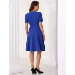 Elegant V Neck Wrap Dress For Women’s Short Sleeve Dressy Dress Ruched Business A-Line Midi Dresses