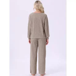 Women’s Ribbed Knit Pajamas Sets 2 Piece Long Sleeve Top And Pants Sleepwear Pjs Loungewear Outfits
