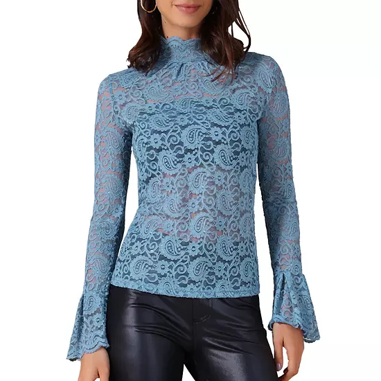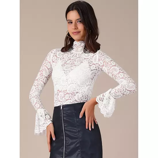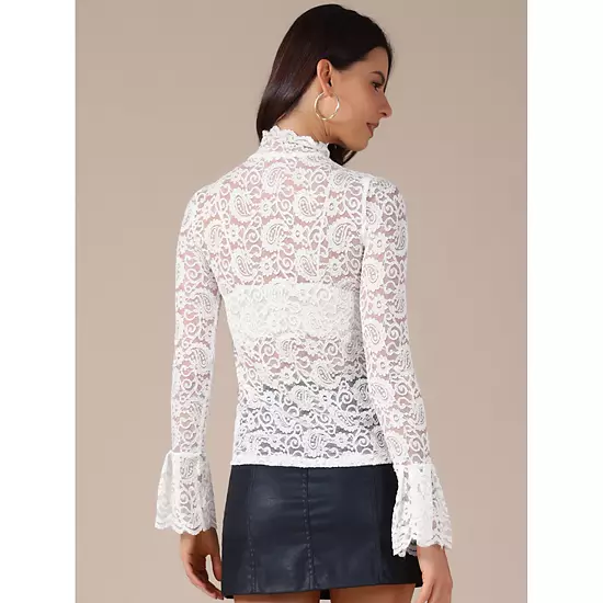 These trendy lace tops enhance your chic appeal and elongate the figure line; perfect for both party and casual wear; this see-through top is convenient in fall, it is easy to wear in daily life; you could pair this chic blouse with jeans in fall, spring, and summer.