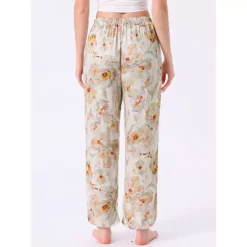 Women’s Lounge Pants Floral Dot Pattern Wide Leg Pants Elastic Waist With Pocket Nightwear Pajama