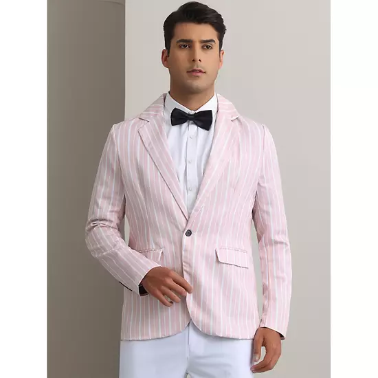 The slim fit formal blazers feature with stylish and versatile stripes, adding a modern taste to your wardrobe. Match the striped sport coats with tailored pants to show your confidence while attending a business meeting, wedding, or social event, button down shirts and a bow-tie for a gentle office look.