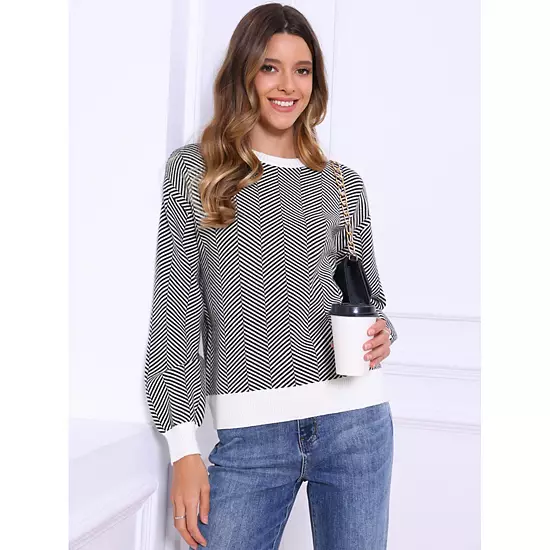 This casual sweater is made up of several design points: Striped Prints, Long Bishop Sleeve, Knit Fabric, Crew Neck, Ribbed Knit Cuffs, Oversized; Suitable for autumn/winter and for many occasions: Casual, School, Daily Life, Office, Outdoor Activities and so on; Perfect to pair skinny pants or leather skirt for a trendy look.